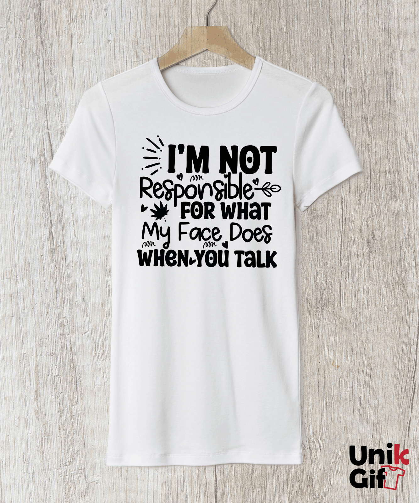 TRICOU PERSONALIZAT ”I'M NOT RESPONSIBLE FOR WHAT MY FACE DOES" - femei